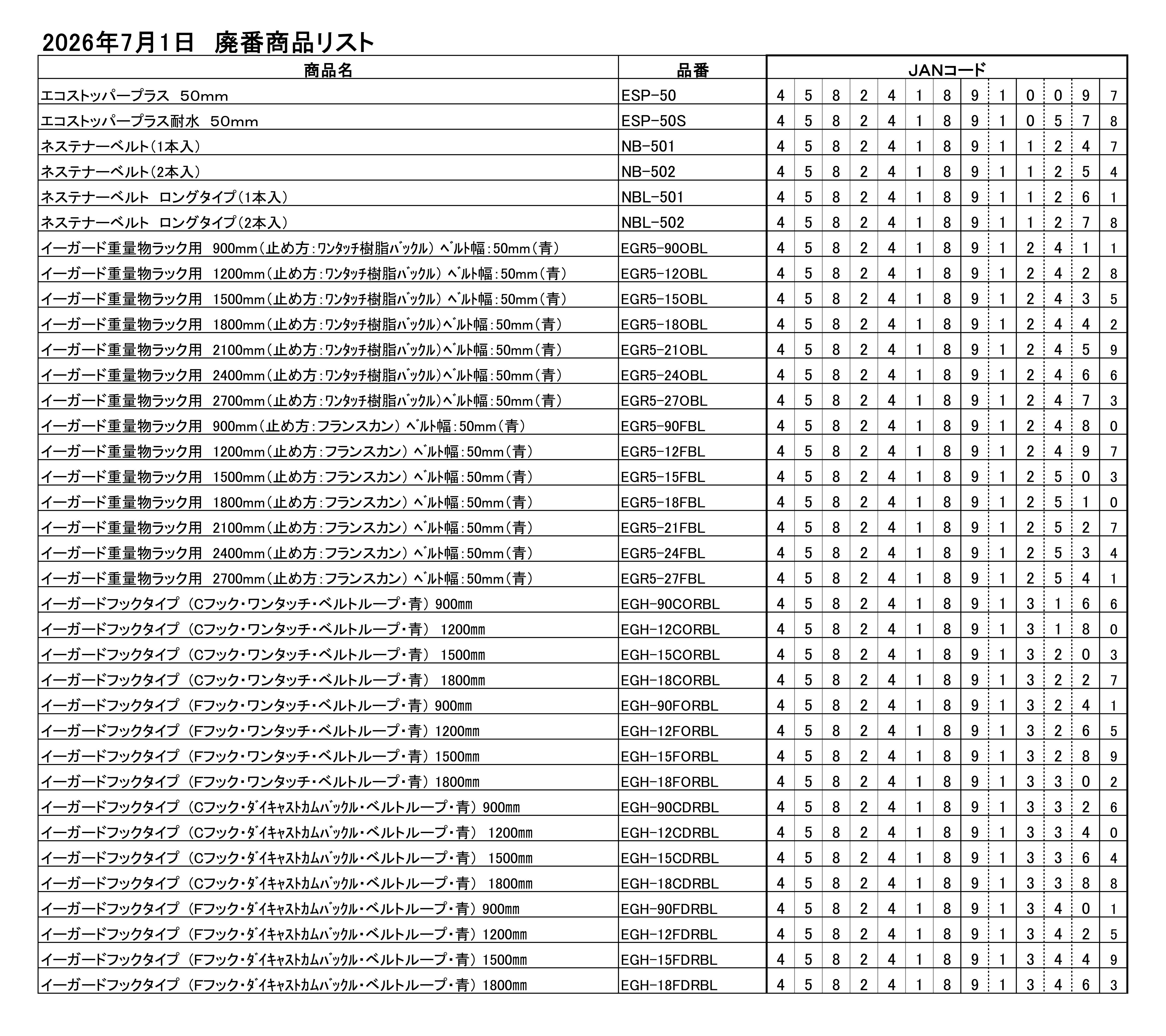 【廃番商品のご案内】ネステナーベルト他